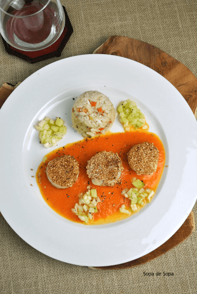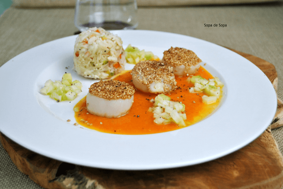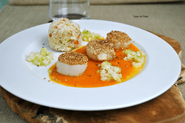 Para servir, Poner una cama de salsa y colocar las vieras encima.