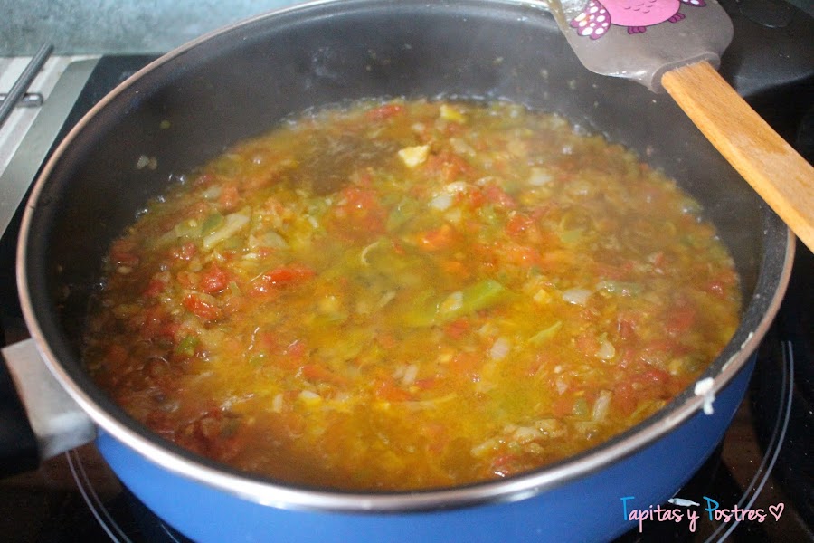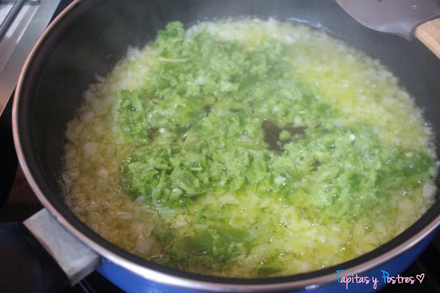 Añadimos el pimiento muy picado y dejamos que se vaya haciendo.