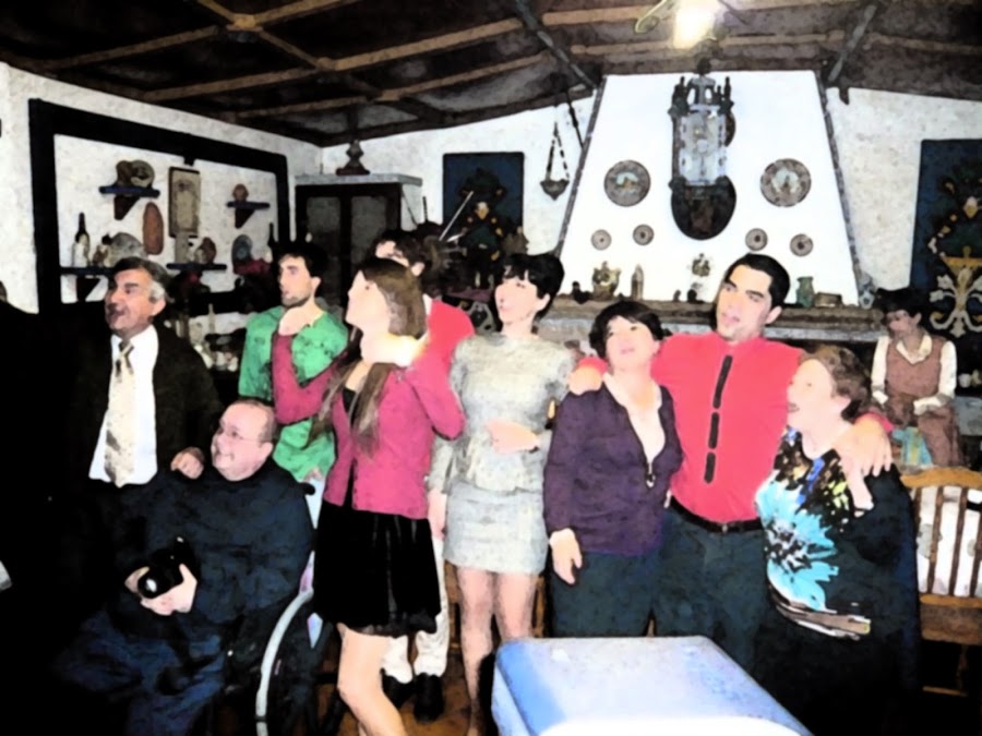 Unos nos encargamos de la comida, otros la decoración y así cada uno tiene su tarea. Un año mi marido decidió poner un proyector, y mientras que llegaban las uvas, puso videoclips. No sé muy bien cómo ni por qué, salió el videoclips de "My way" con los subtítulos y allá que fueron a cantarla. Desde entonces lo hacen todos los años, incluso buscan versiones raras (¿Os acordáis de la ovejita?).