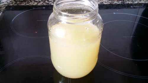 Verter en un recipiente de vidrio y conservar en la nevera (para detener la fermentación).