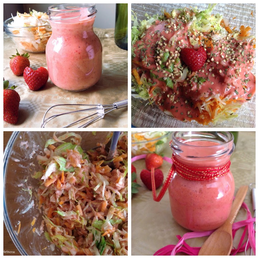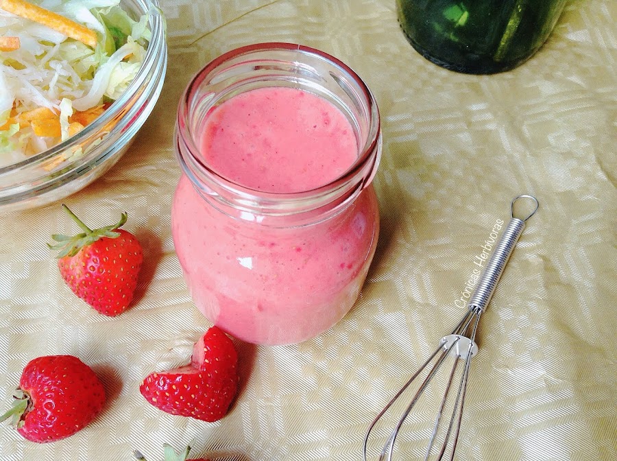 Deja reposar en el frigo 5 minutos antes de servir.(Puedes colar la vinagreta por si ha quedado alguna semilla de la fresa si lo deseas)