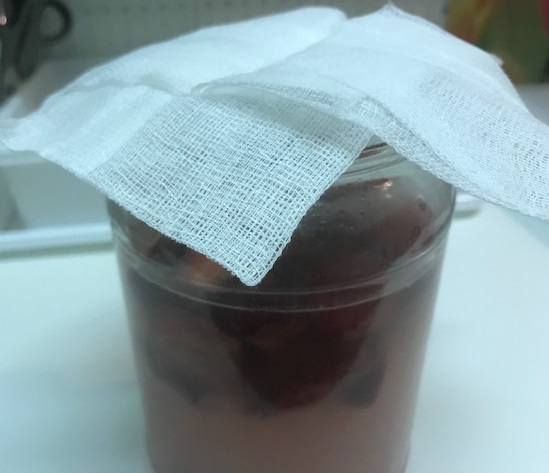 Ya solo queda tapar el frasco. Las gasas se ponen porque al fermentar se produce CO2 y nos interesa que respire un poco pero que entre el mínimo oxigeno.