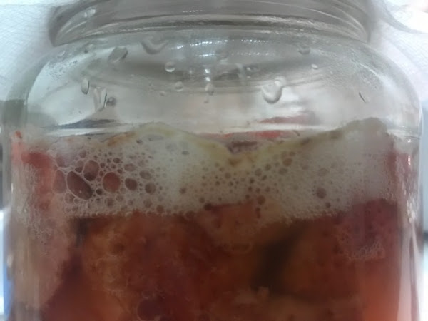 Pasadas las 24 horas abre el frasco, disuelve la levadura en agua tibia y añádela a los fresones.