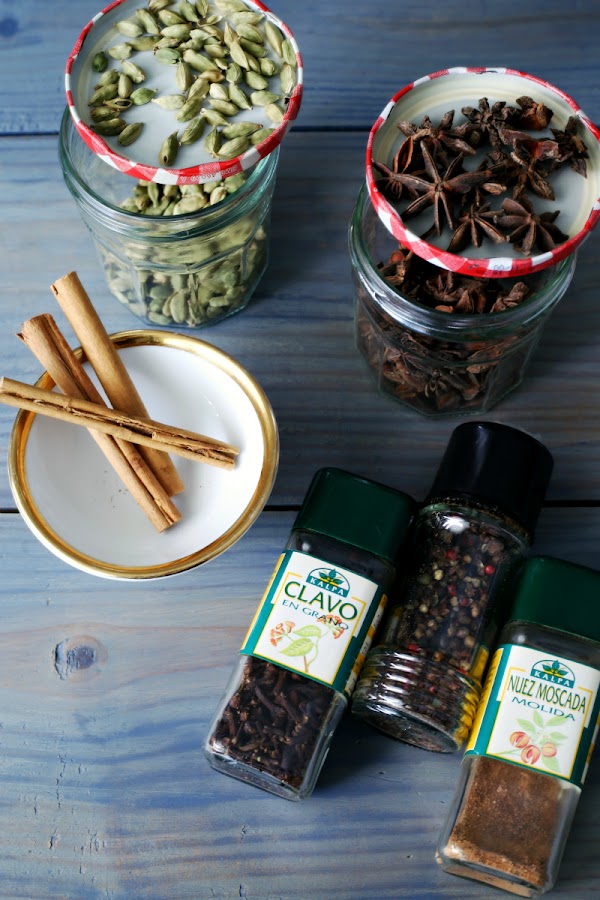 melaza, dos granos de anís estrellado, cuatro de clavo, una cucharada sopera