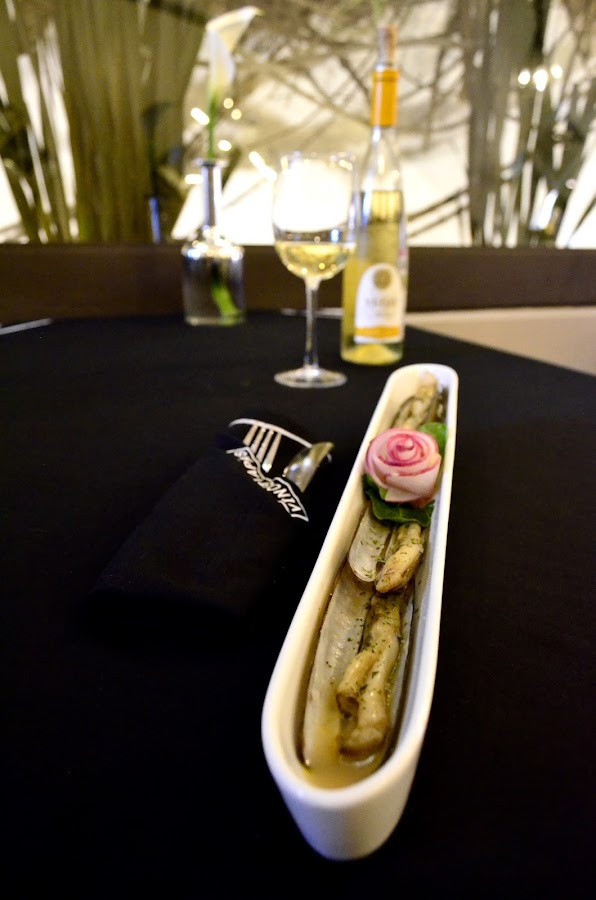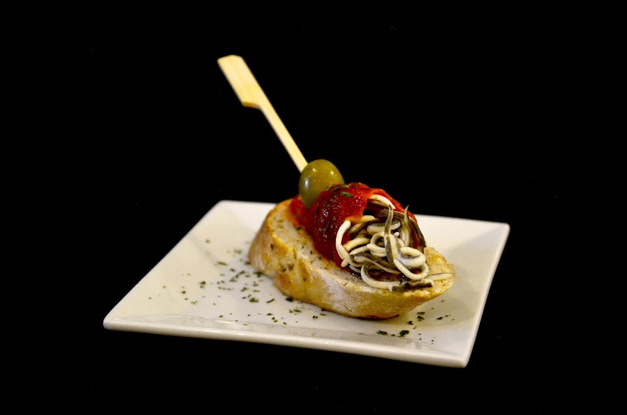 Cómo sugerencia de la Chef Stefania Chávez Rosales, inicié mi aventura con una de las tapas más pintorescas que hasta ahora he visto, la Pimiento Relleno de Angulas. Un pimiento mini bell rojo, horneado y relleno de angulas de surimi, descansando sobre un pan tomata (salsa de jitomate natural) respetando los sabores de los ingredientes.
