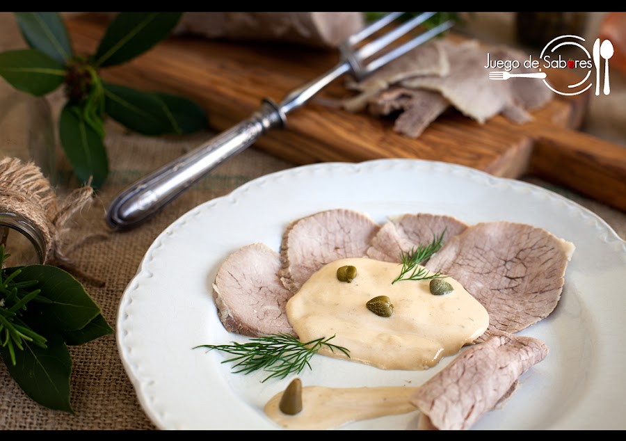 Cortar la carne muy fina, si es posible con un corta fiambre y acompañar con la salsa. Se come frío.