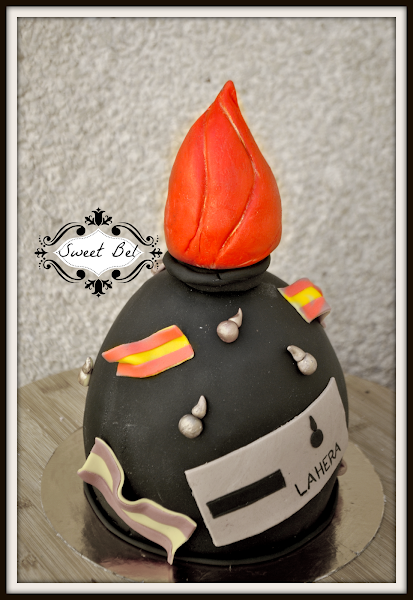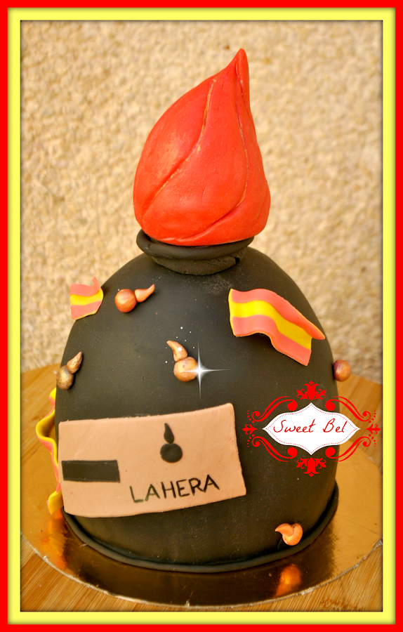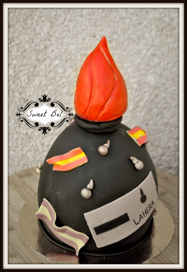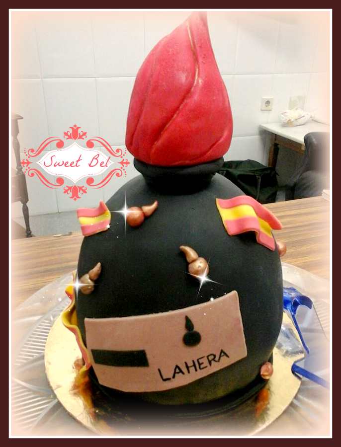 Esta tartita ha tenido mucho éxito entre este personal ya que engloba muchas cosillas, como un parche y como las bombetillas pequeñas. Estas bombetillas son iguales a las que llevan en el traje de representación o traje de bonito.