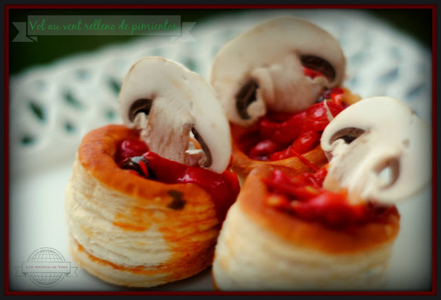 Hola a todos... Ante todo os deseo un nuevo año maravilloso a todos!! Aquí os presento una delicia que preparé para la cena de nochevieja, los tradicionales pimientos asados presentados dentro de un vol au vent mini, adornados por un champiñón laminado, quedaron estupendos y además con una presentación impresionante!!