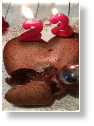 Este fue el postre que hice para nuestro aniversario de boda. En principio iba a hacer otro pero finalmente al faltarme un ingrediente, opté por hacer este rico "volcán de amor".