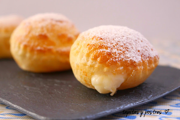 Horneamos a 200º unos diez minutos, o hasta que los veamos que han subido y están dorados. Dejamos enfriar antes de rellenar y servimos lo más inmediatamente posible.