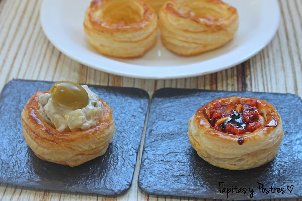 Esta semana se me antojó ir ensayando aperitivos y entrantes para Navidad. Quería ver clase de rellenos quedarían mejor para unos volovanes. Y el caso es que no había nada abierto para comprar volovanes industriales, así que improvisé con una plancha de hojaldre que había en la nevera.