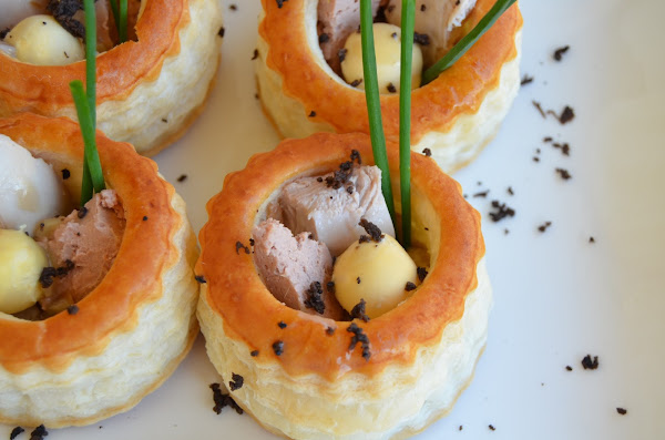 Una vez estén hechas las codornices, las sacamos para que se templen y dejamos reducir las setas. Cuando estén templadas las codornices le sacamos las pechugas y depende como sean los volovanes de grande las partiremos en dos o tres trozos.