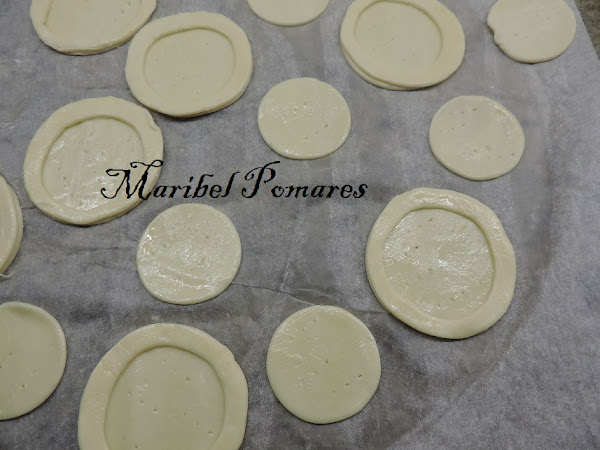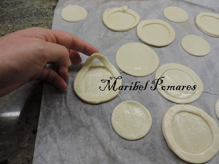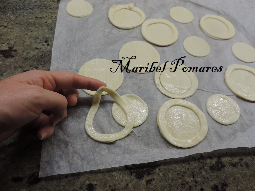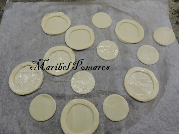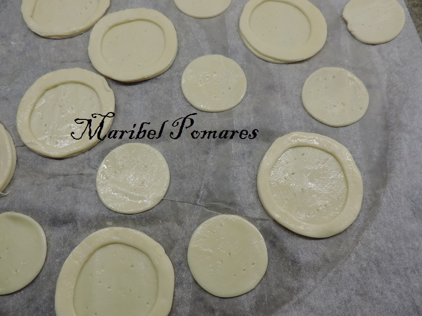 Una vez echos los circulos,con otro corta pastas más pequeño, lo centramos en los círculos ya cortados.