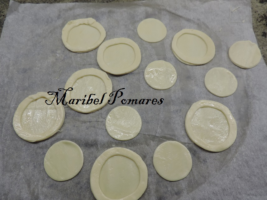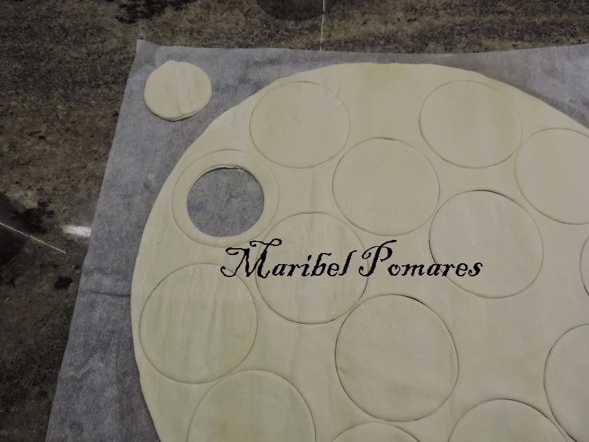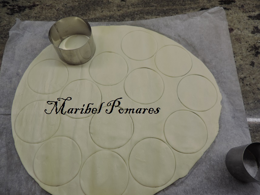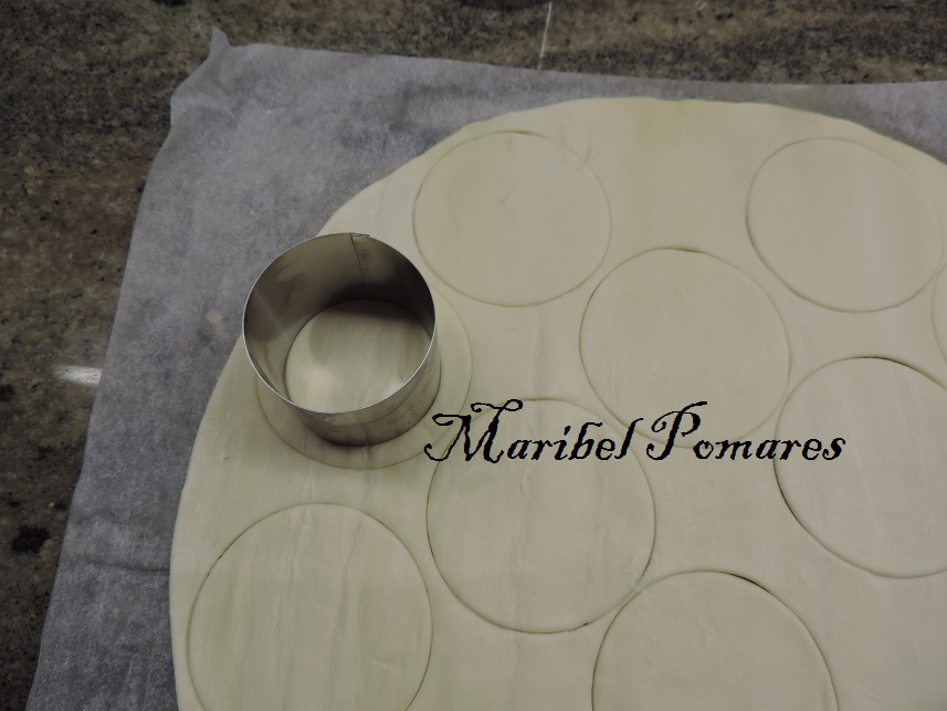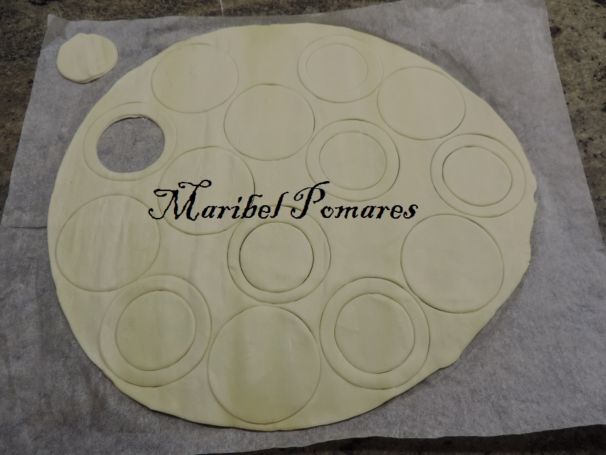 Extendemos la masa de hojaldre y vamos cortando con un cortapasta redondo.