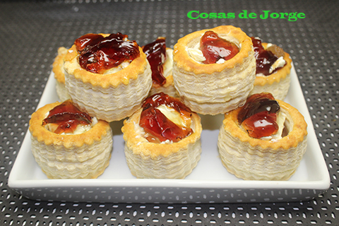 También hacia días que tenía un queso fresco en salazón y se me ocurrió que la combinación de volovanes, queso salado, mermelada y miel podría quedar bien, y no quedo bien, quedó superior, con un estupendo contraste de sabores.