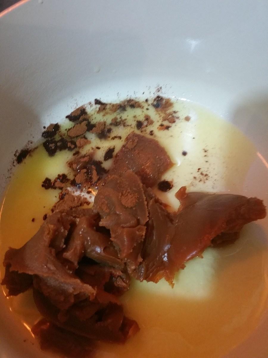 Agrega el caramelo o dulce de leche a la mantequilla y revuelve hasta que empiece a burbujear.