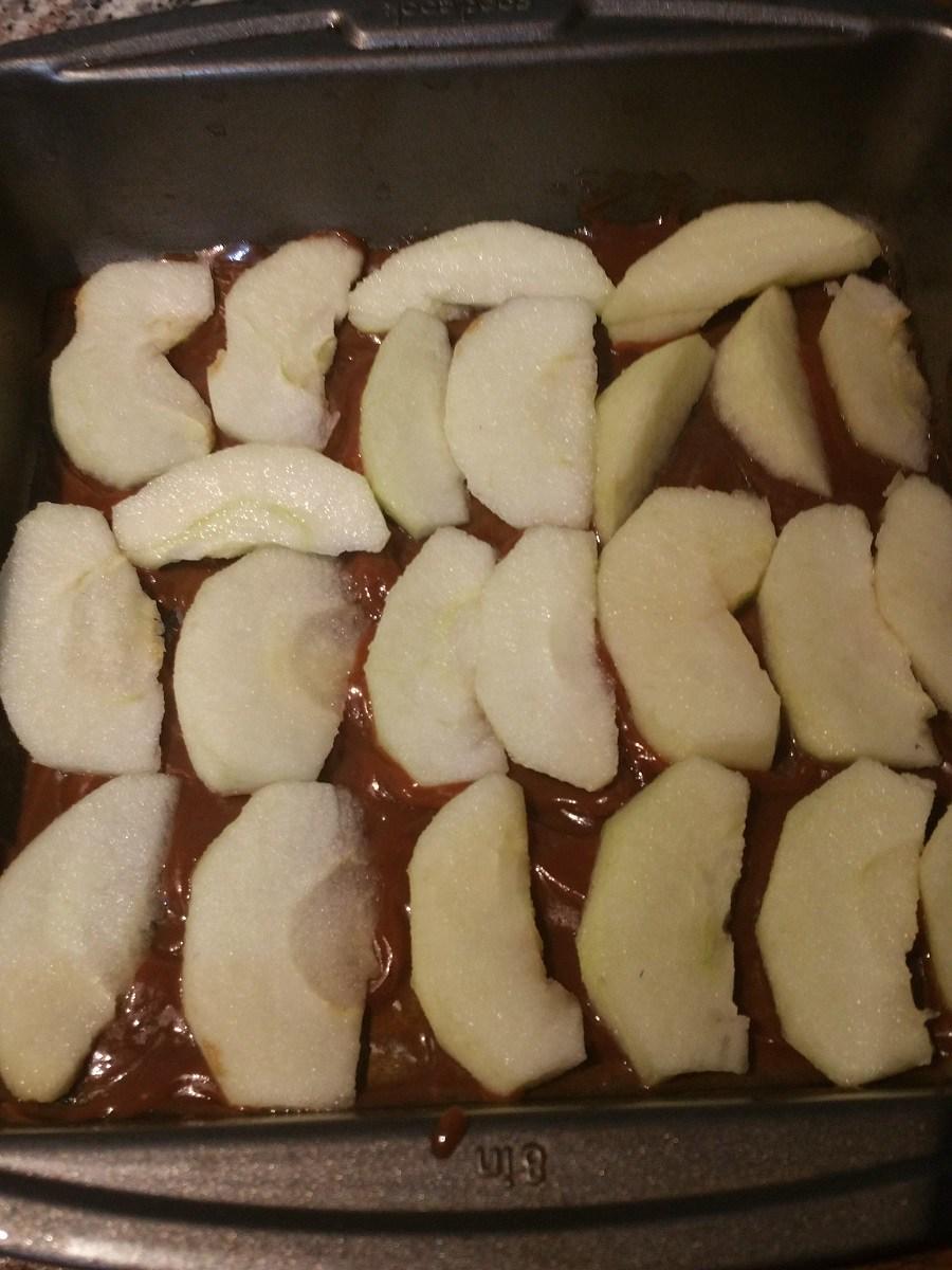 Coloca las manzanas como desees acomodarlas encima del caramelo y espolvorea con canela en polvo.