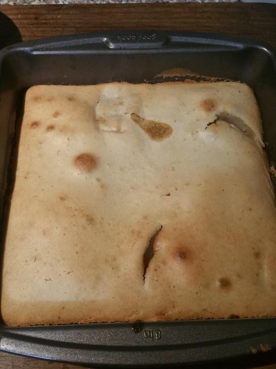 Agrega la mezcla del bizcocho al molde, espárcela de manera que cubra todo el molde.