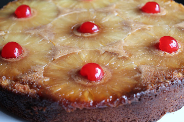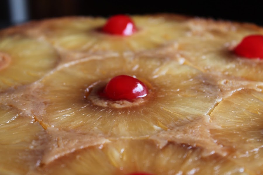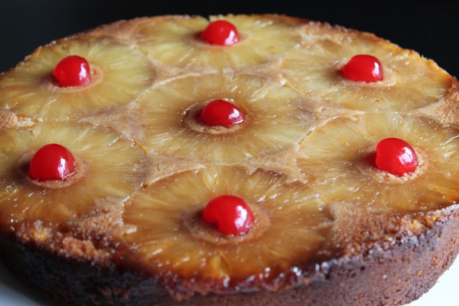 El volteado de piña es un postre típico latinoamericano que se prepara sobre una base de rodajas de piña y cerezas confitadas que tras desmoldar, quedarán en la parte superior, de ahí su nombre. Añadí leche condensada a la receta tradicional para obtener un pastel de consistencia más parecida a un cheesecake, ya que me parecía más jugoso que un simple bizcocho.