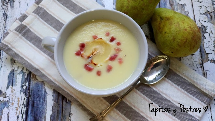 Pero esta no es una vychissoise normal, no, esta está enriquecida además con peras y queso.
