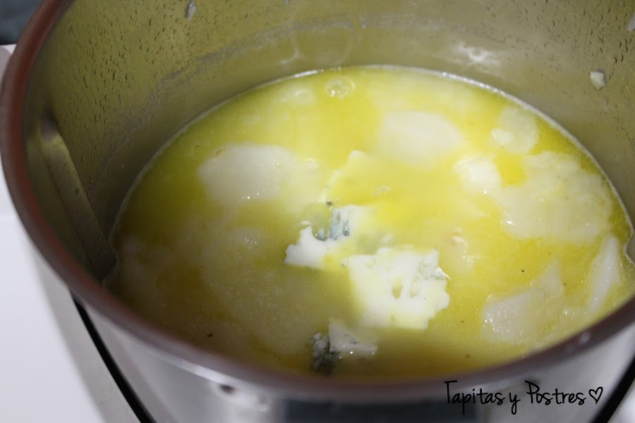 Pero dos minutos antes de que acabe agregamos el queso roquefort y dejamos terminar. Después trituramos.