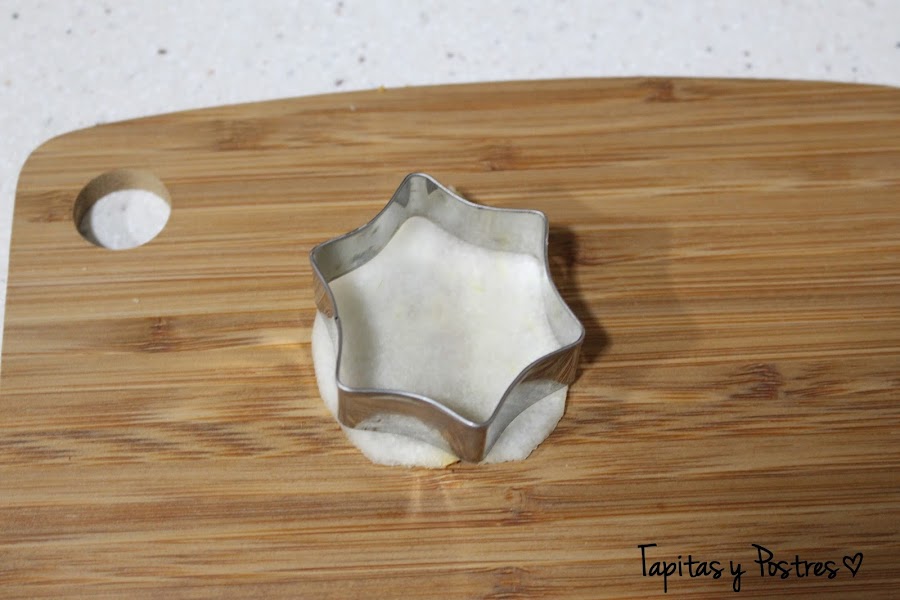 Yo he usado uno en forma de estrella, pero si no tenéis dadle forma redonda o cuadrada. los secamos un poco en el horno para que queden semi crujientes.