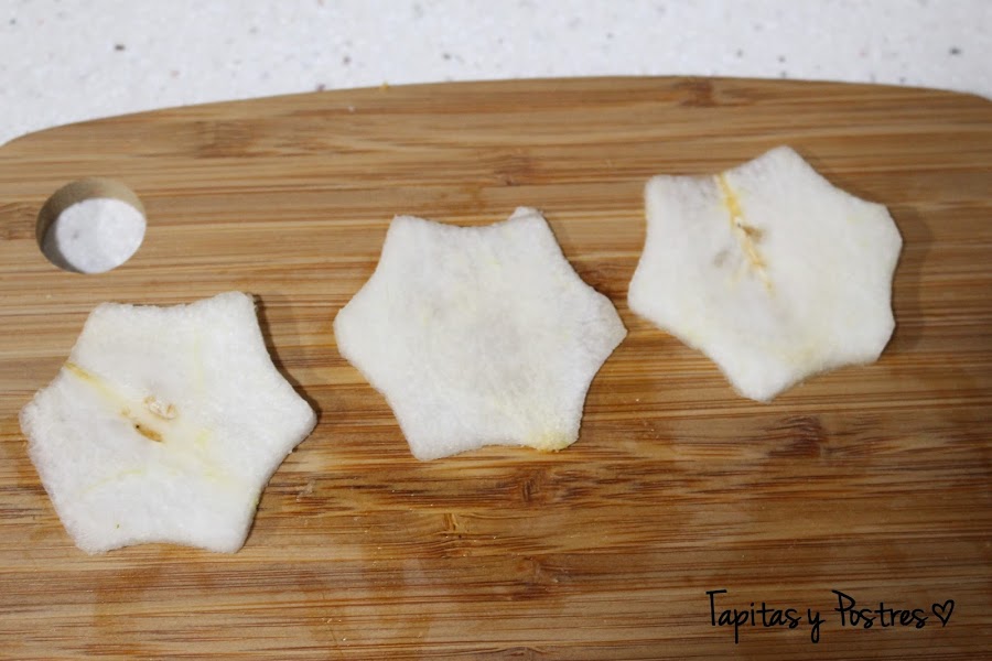 Mientras vamos a hacer unos chips, con laminas de pera que cortaremos con un cortapasta.