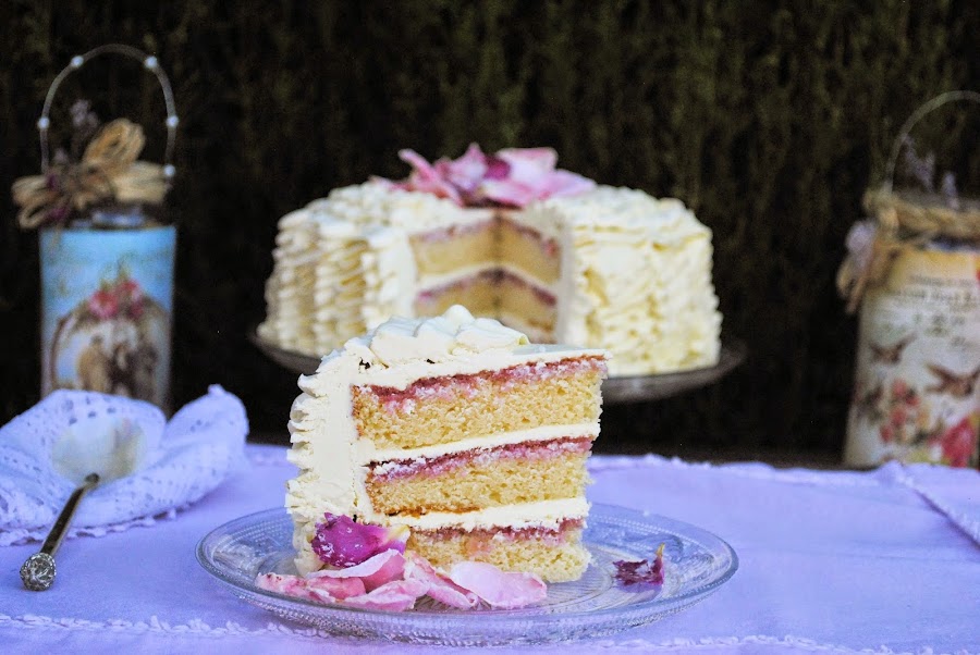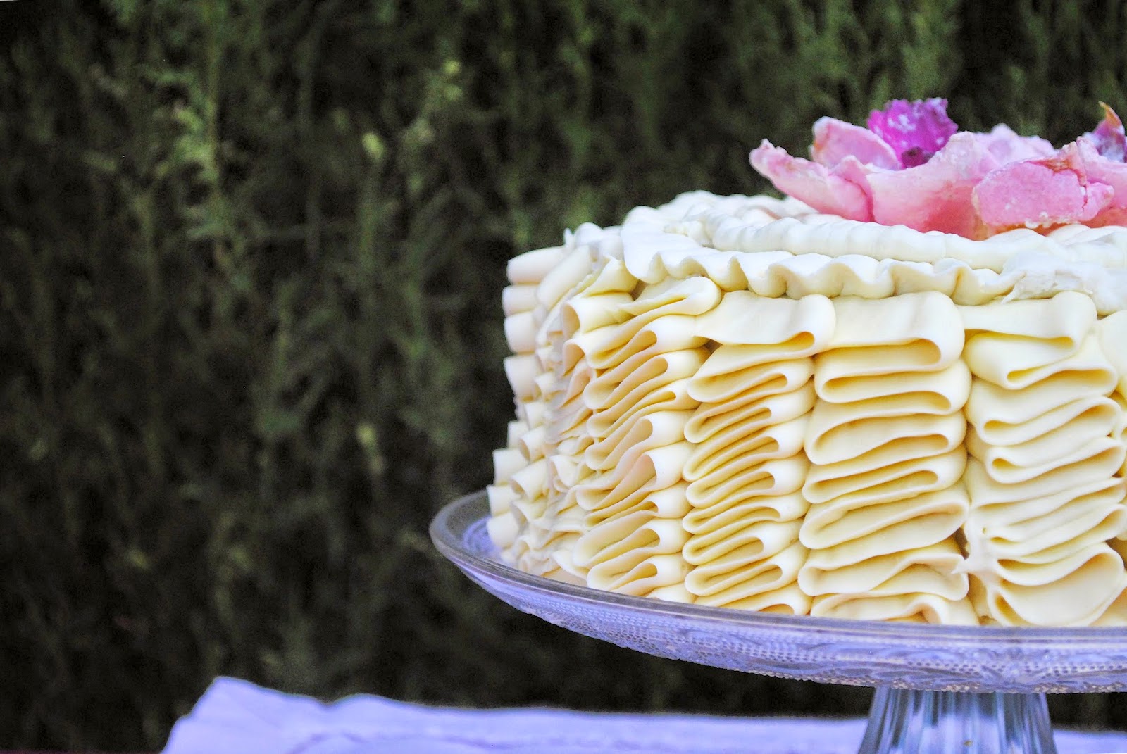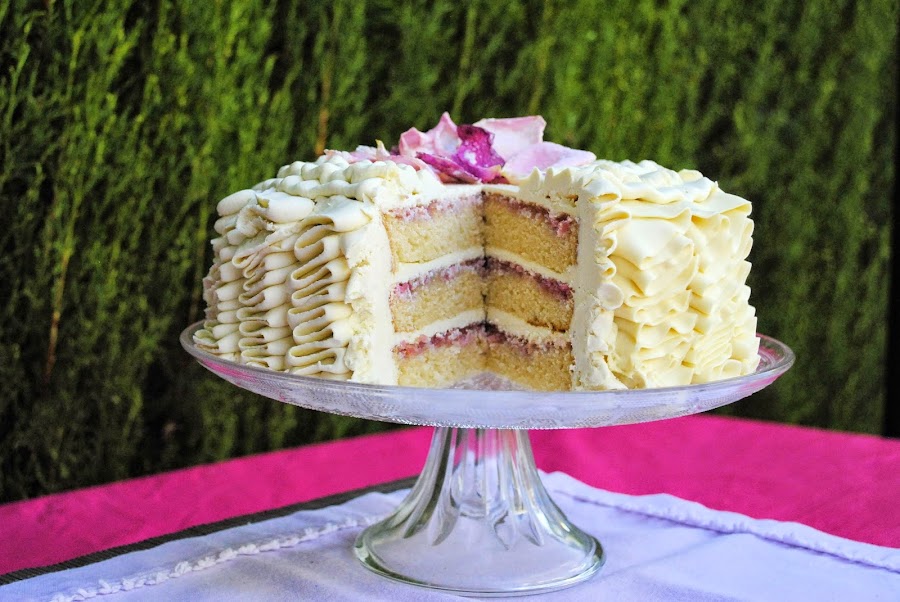 Tarta de Nata Montada (crema de leche) y Sirope de Frambuesa con Ganache de Chocolate Blanco
