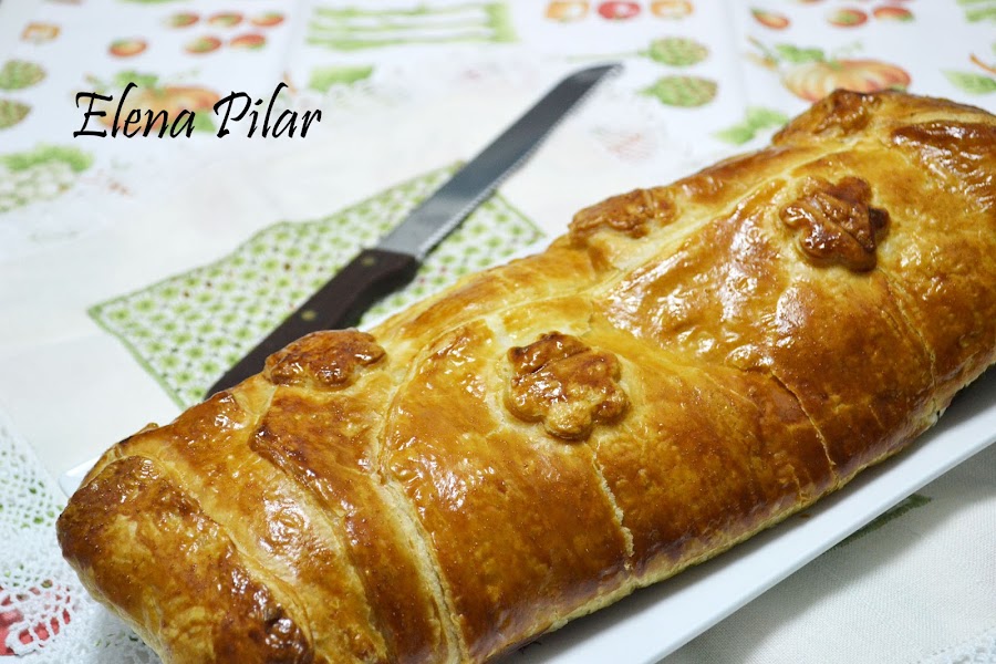 Pintamos con huevo batido y horneamos 40-50 minutos a 220ºC (horno precalentado) o hasta que la masa haya cogido un bonito color dorado. Servimos caliente o templado.