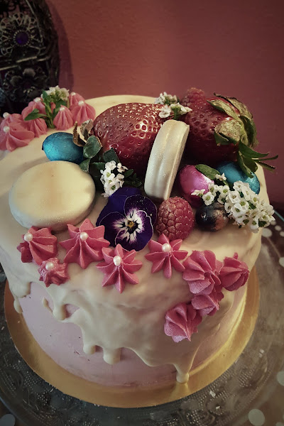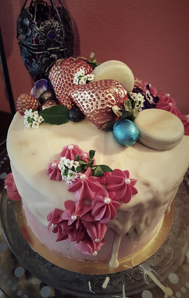 Pasaremos a decorar finalmente nuestra tarta. Podéis hacerlo como gustéis. Nosotros pusimos una capa de chocolate blanco y decoramos tal y como lo veis en la foto.