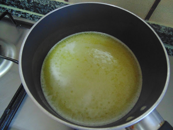 Comenzamos calentando en un cazo el agua con la mantequilla en dados.