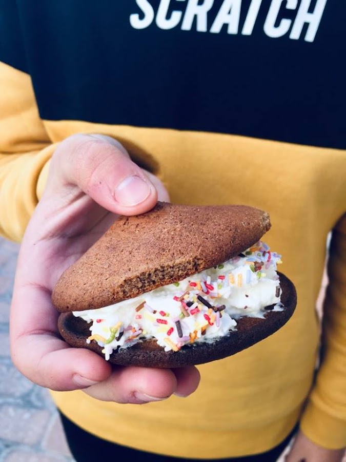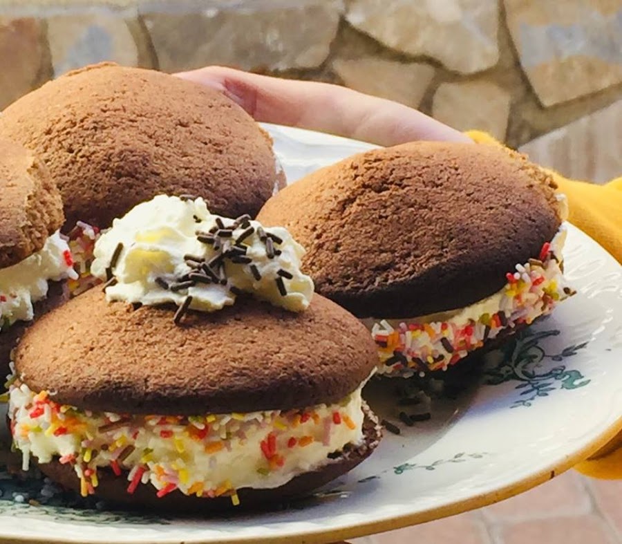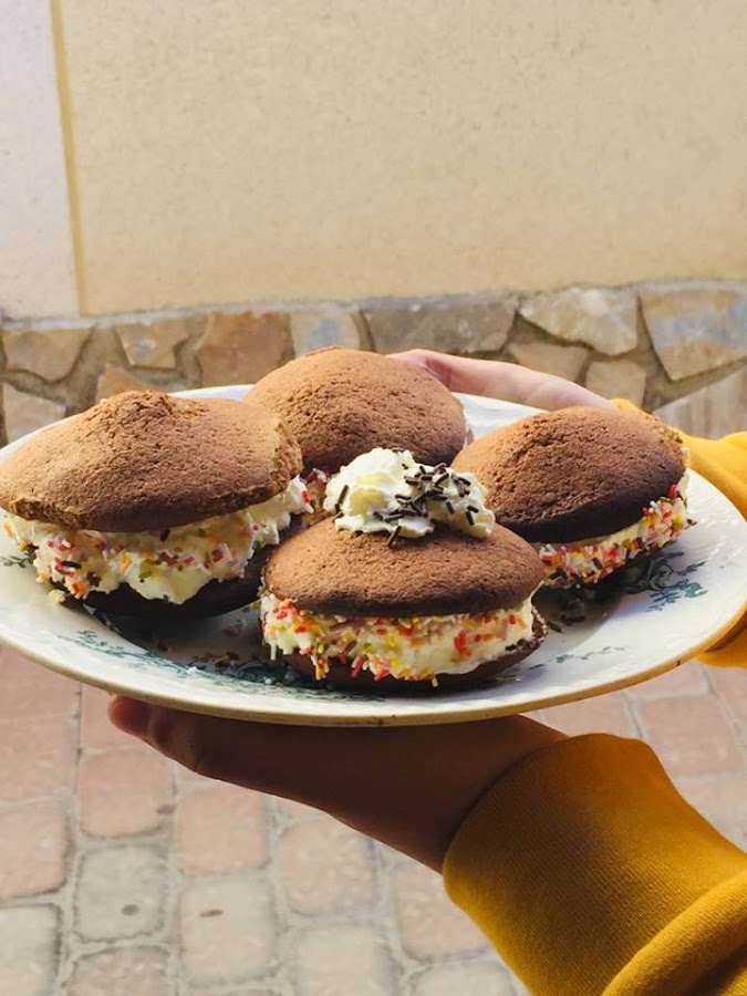 .Para rellenarlos, solo hay que hacer coger una parte de los biscochitos, rellenamos y cerramos con otro bizcochito, presionamos un poquito y decoramos con unas virutas de colores.