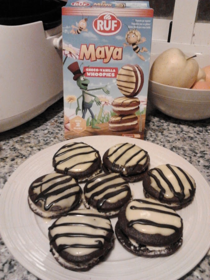 Ayer fui al LIDL y encontré un preparado para hacer whoopies, mi peque me dijo, mami cómpralos y lo hacemos juntos y eso hicimos.
