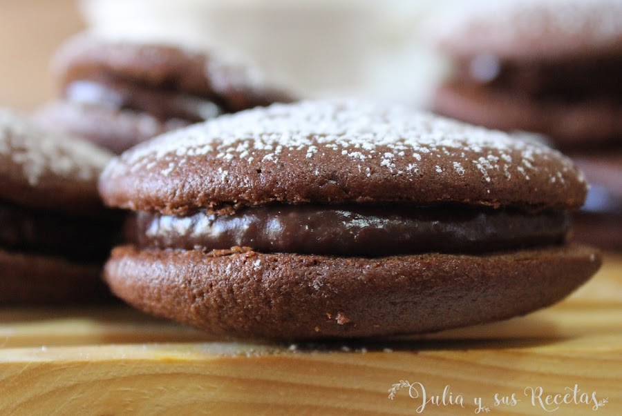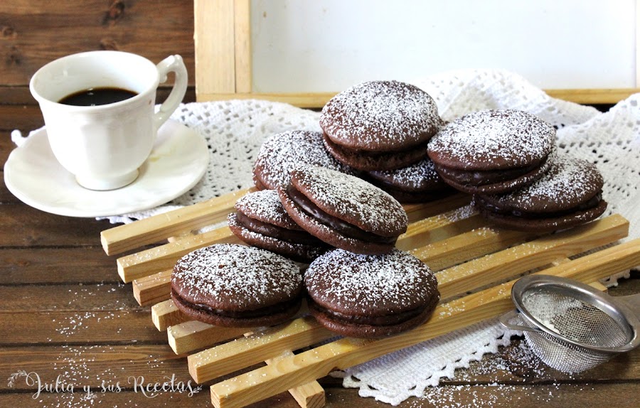 Los whoopies son unos dulces estadounidenses, considerados tanto una galleta como un pastel...Consta de dos piezas de pastel de chocolate relleno de una crema dulce.
