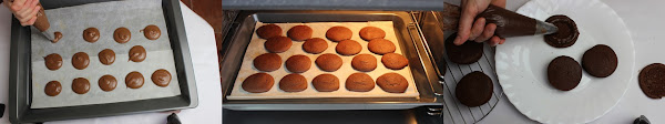 Los rellenamos con la crema que tenemos en la manga pastelera con boquilla redonda y rellenamos los whoopies hasta terminarlos todos.