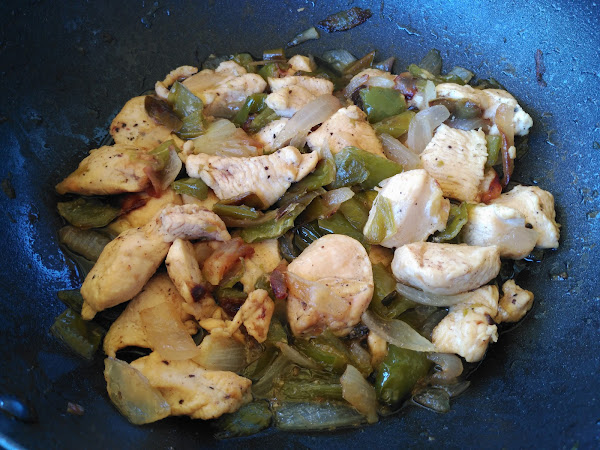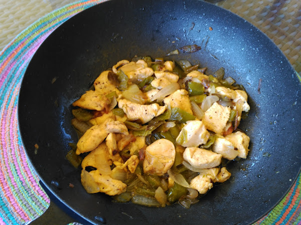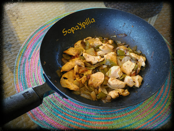 - Cuando la verdura esté blandita, añadimos el pollo, damos unas vueltas hasta dorar y servimos.