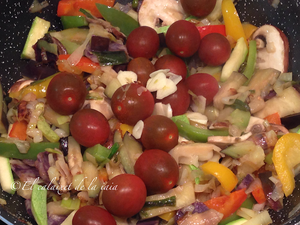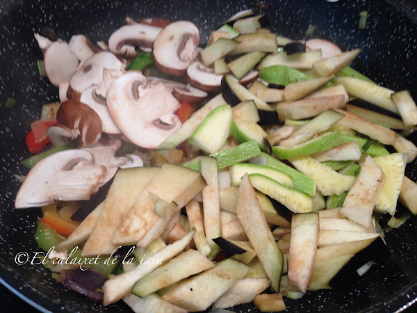 y a continuación los champiñones, la berenjena, y el calabacín