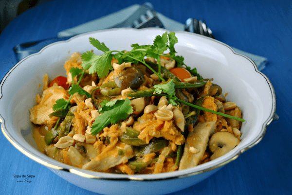 El resto son los típicos ingredientes para conseguir este plato. Curry, leche de coco, cacahuetes...