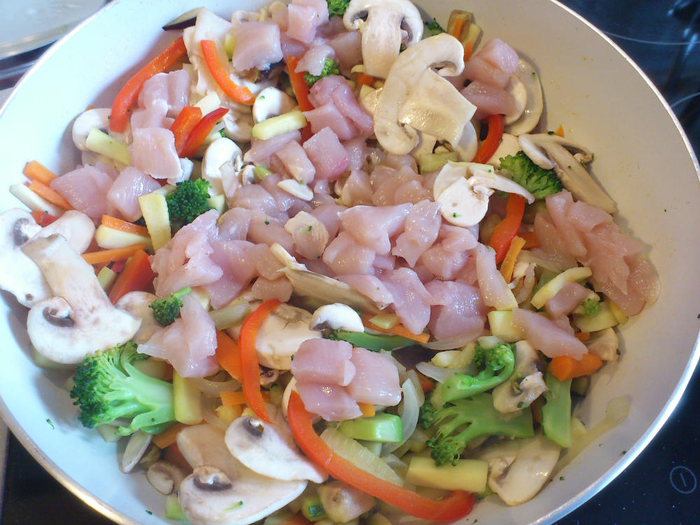 - El tiempo de cocción de las verduras dependerá de si quieres que queden más o menos blanditas. Si te gustan al dente (o casi crudas) tendrás que tenerlas el menor tiempo posible. Para ello, puedes saltear el pollo en una sartén a parte y luego incorporarlo a las verduras, ya que el pollo tarda otro rato hasta que se cocina.