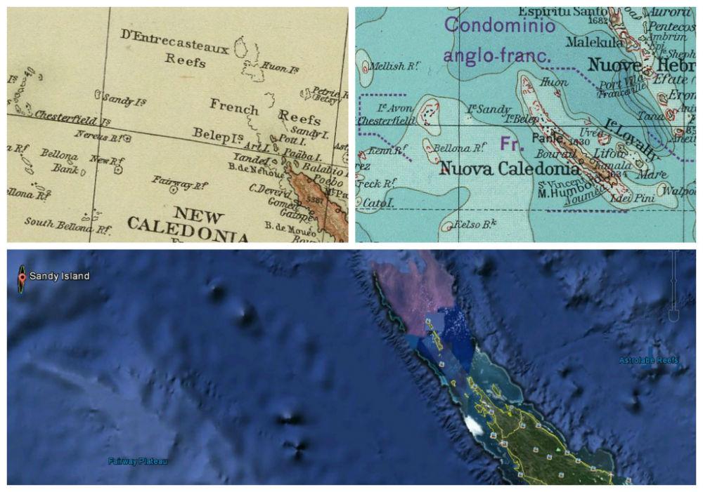 Hay una isla fantasma en el Pacífico. La Isla Sandy ubicada en el Océano Pacífico, entre Australia y Nueva Caledonia, aparece en numerosas cartas naúticas, atlas e incluso, hasta el año 2012, en las aplicaciones Google Earth y Google Maps. Un equipo de geólogos australianos empezó a sospechar cuando las cartas de navegación de un buque indicaban 1.400 m. de profundidad en una zona donde los mapas científicos y Google Earth mostraba la existencia de una gran isla... ¿Dónde ha ido a parar?... Nadie sabe si ha desaparecido o quizá nunca existió y sólo fue un error difundido a lo largo de la historia.