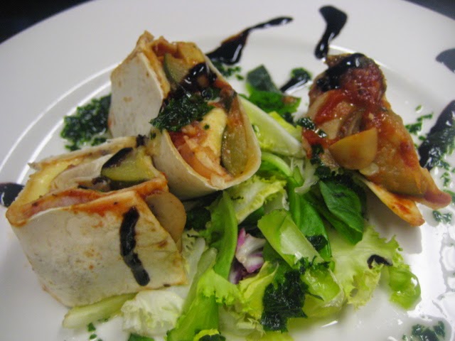 WRAPS DE CALABACÍN, JAMÓN SERRANO, CHAMPIÑONES Y BRIE