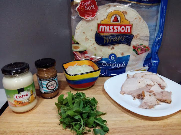 Buenos días! Para hoy os propongo una receta sencilla. Se trata de unos wraps rellenos de un delicioso lomo adobado a la sal combinado con cebolla encurtida, rúcula y aderezado con una mezcla de mostaza al estragón y mayonesa. Os puedo asegurar que es una de las combinaciones mas frescas y sabrosas que he probado en mucho tiempo.