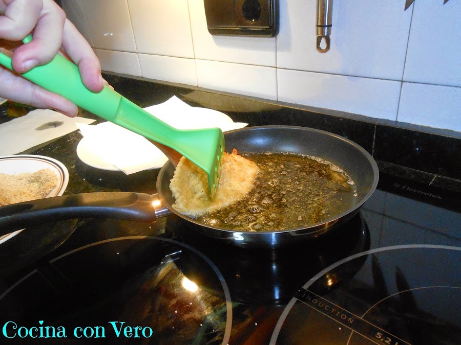 Una vez sazonados los pasamos por el huevo previamente ya batido por ambas caras y por el pan rallado procurando de que queden bien cubiertos por todos los lados.