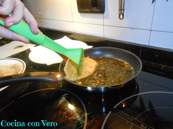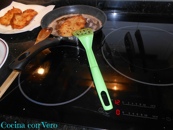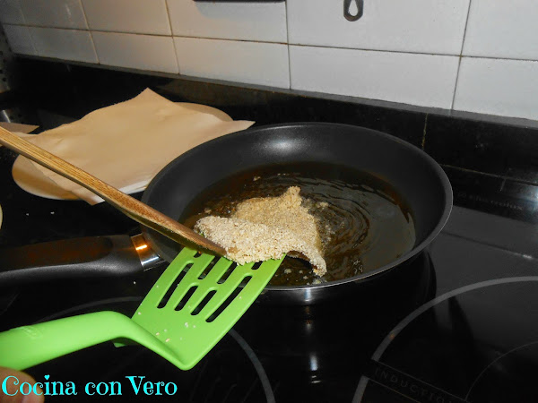 Con la espátula y con la ayuda de la cuchara de madera les vamos dando vueltas hasta que se doren por ambas partes.