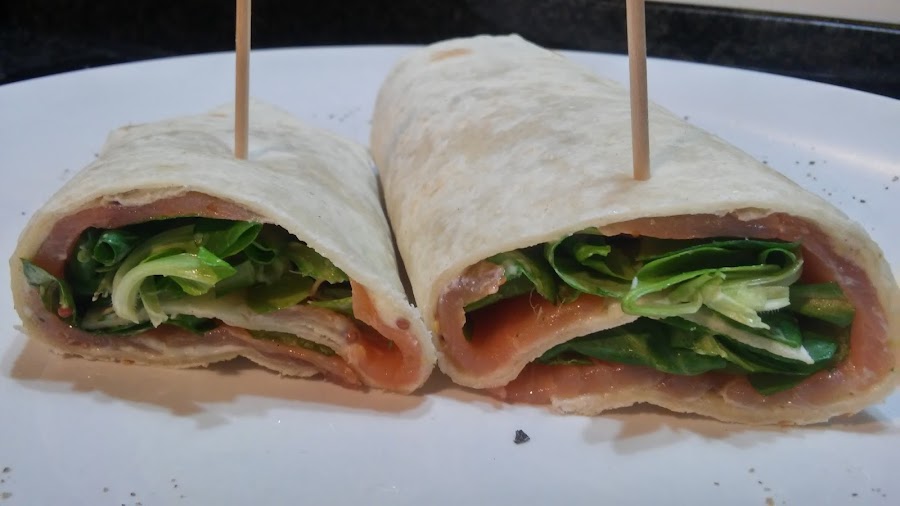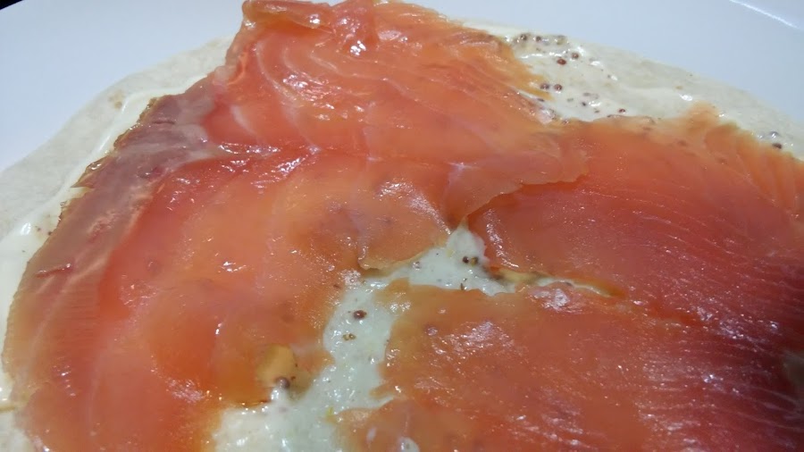 Hoy prepararé Wraps de salmón ahumado con canónigos y salsa de mostaza y mayonesa.
