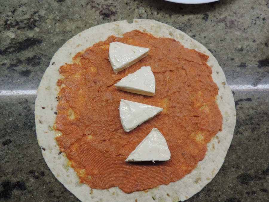 Poner 4 quesitos lo doblamos y presionamos un poco para que se aplasten los quesitos.