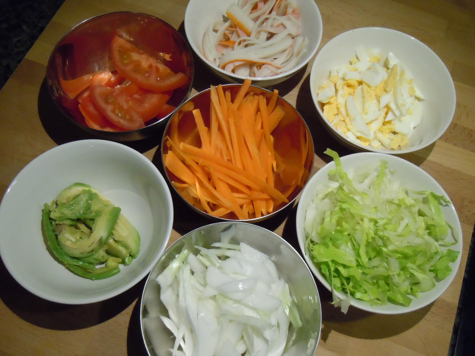 NOTA: si tenéis muchos invitados y queréis hacer una comida tipo buffet la idea es genial. Sólo tendréis que cortar los ingredientes, disponerlos en boles o bandejas y que cada uno se fabrique el suyo.