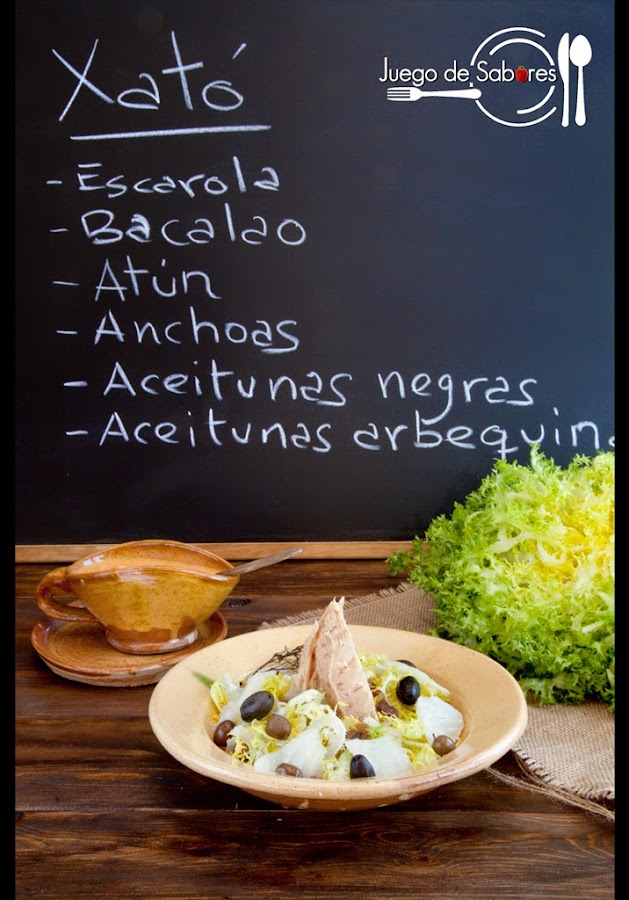 Si algún investigador pretendiese determinar la paternidad del "xató" se las vería y desearía. Creo que nunca un plato ha tenido tantos padres, o presuntos progenitores. En el ADN de esta ensalada invernal, que combina a la perfección los productos de la mar con los de la huerta, está una salsa sencilla pero sublime: el romesco. Cada "maestro xatonaire" (porque hay que decir que este plato tiene maestros) guarda su pequeño secreto a la hora de elaborarla. Por lo demás, los ingredientes básicos son la escarola, el bacalao desmigado a mano, las anchoas, el atún en porciones y las aceitunas, negras y arbequinas. Estas últimas son pequeñitas, redondas y ligeramente amargas, pero que una vez prensadas destilan un aceite que ha merecido innumerables distinciones internacionales.