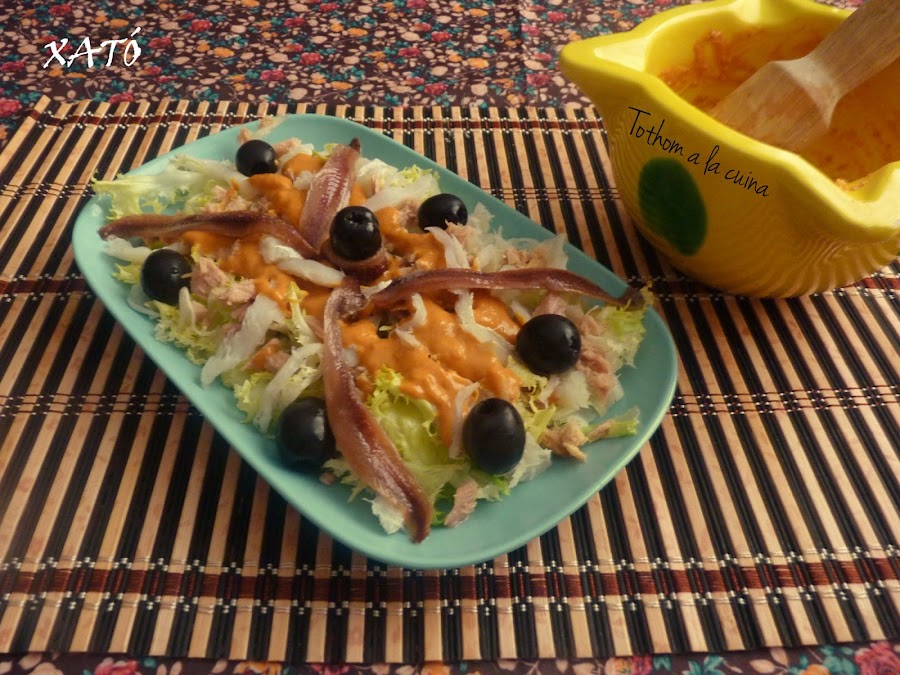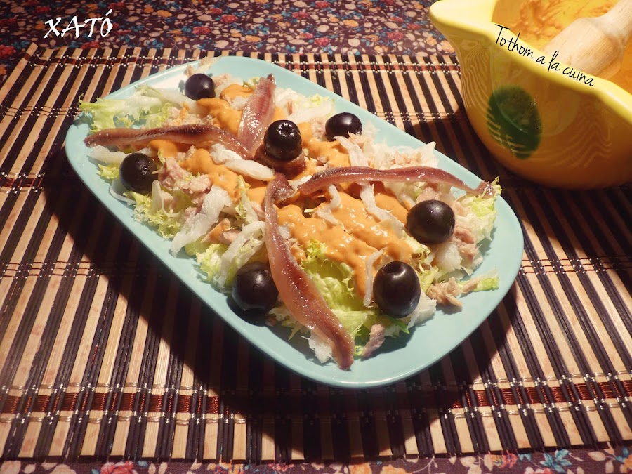 La que os traigo hoy es una ensalada muy típica de zona del Garraf y Penedés en la costa de Barcelona (Sitges, El Vendrell, Vilanova i la Geltrú o Vilafranca del Penedés).