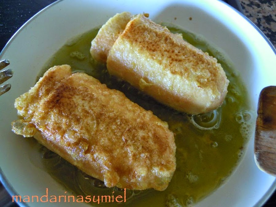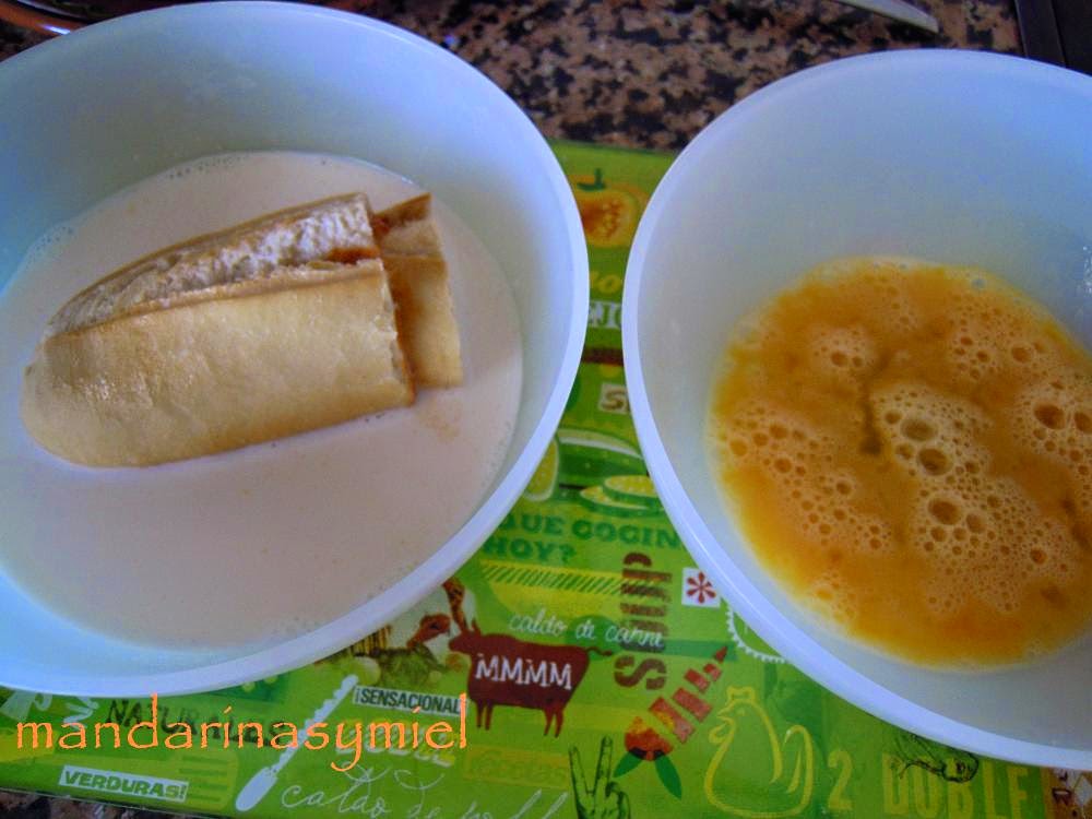 Pon abundante aceite en una sartén, reboza los panecillos por leche y por huevo batido y fríelos hasta que estén doraditos.